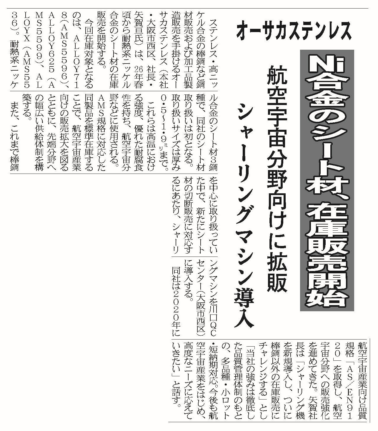 オーサカステンレス 9月19日付