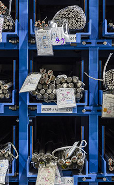 材料発注から入荷、そして出荷までの工程管理を徹底。チャージ管理・ロット管理を実施し、万全のトレーサビリティ管理を行っています。また、入出荷時にPMI測定(簡易成分分析)を行い、異材流出防止の徹底に努めています。